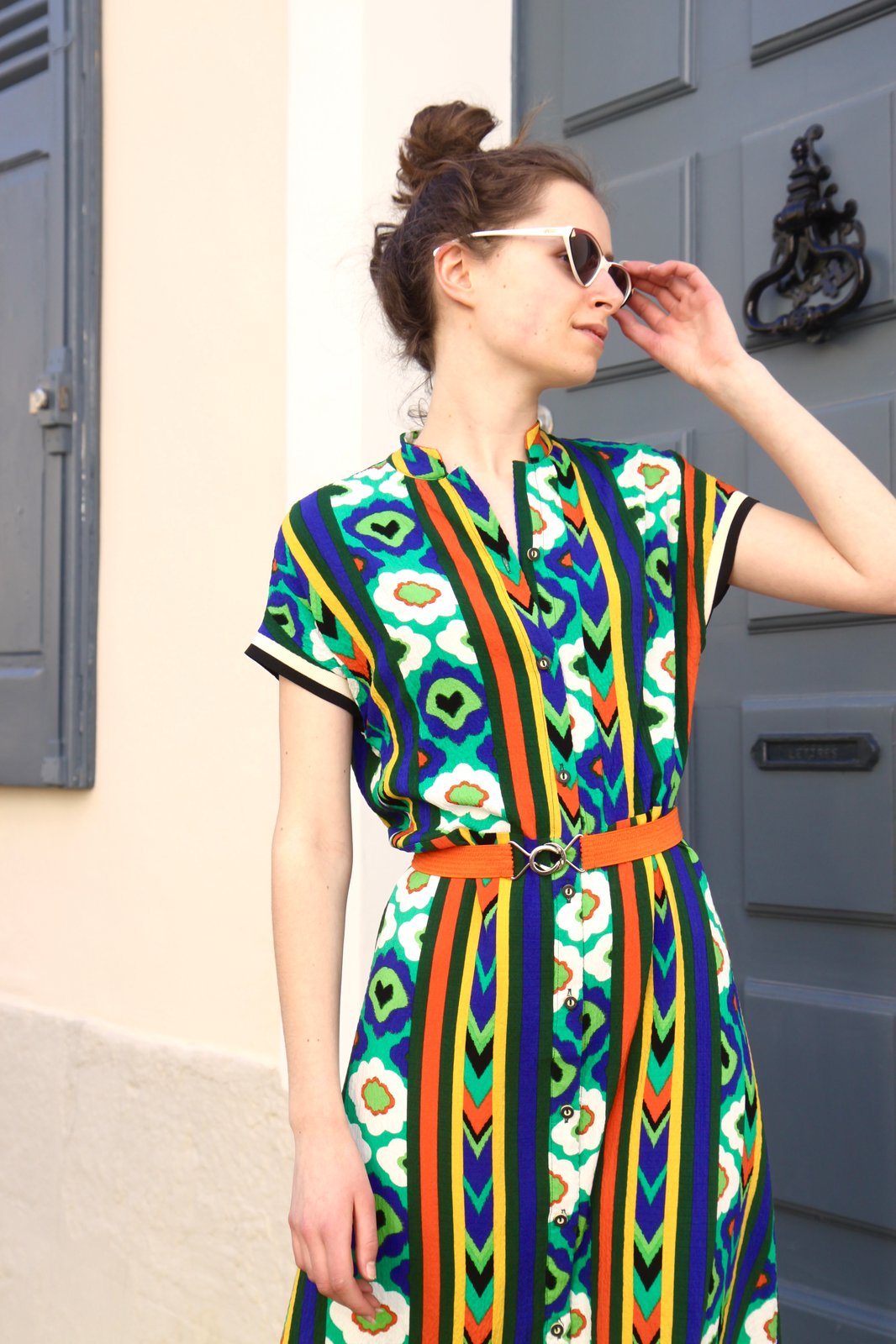 Robe longue en viscose imprimée. jupe doublée de Voile de coton. Robe ultra confortable souple et agréable à porter. Taille ajustée par une ceinture. Finitions des manches en bord cote. Robe qui taille plutôt large. Prix: 249€ SOLDES -50%=124,50€