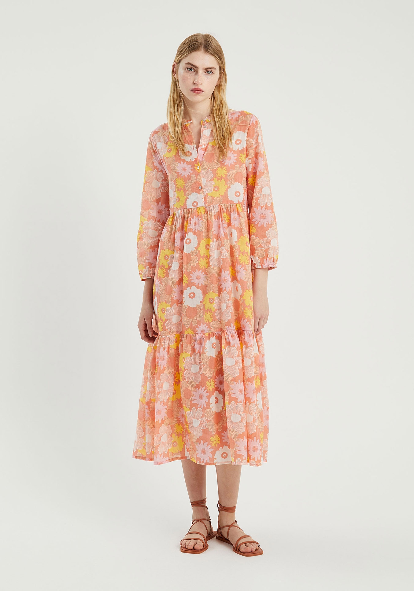 Robe tunique midi en voile de coton imprimé fleuri.