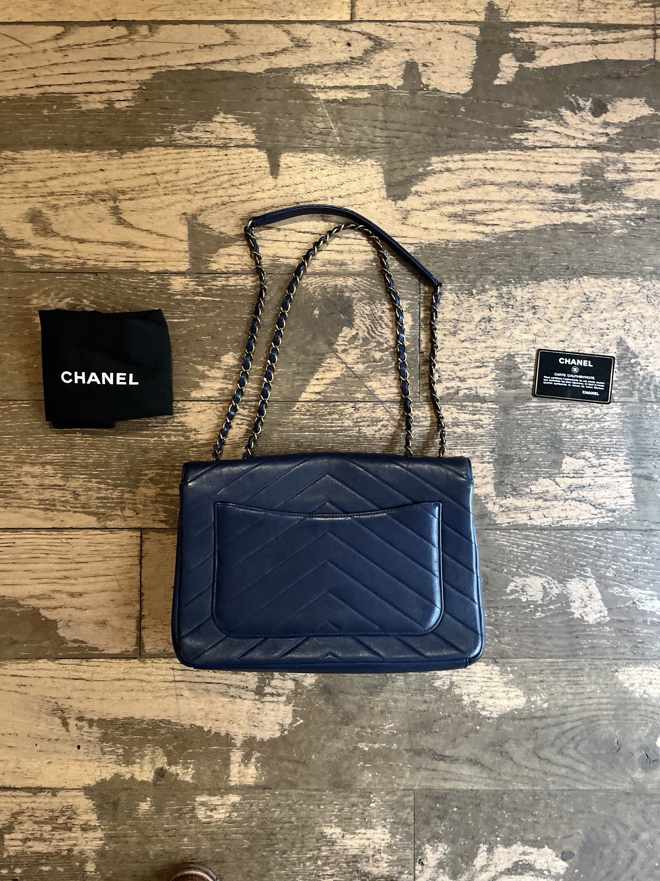 Très beau sac Timeless en agneau navy, avec carte et dust bag modèle rare