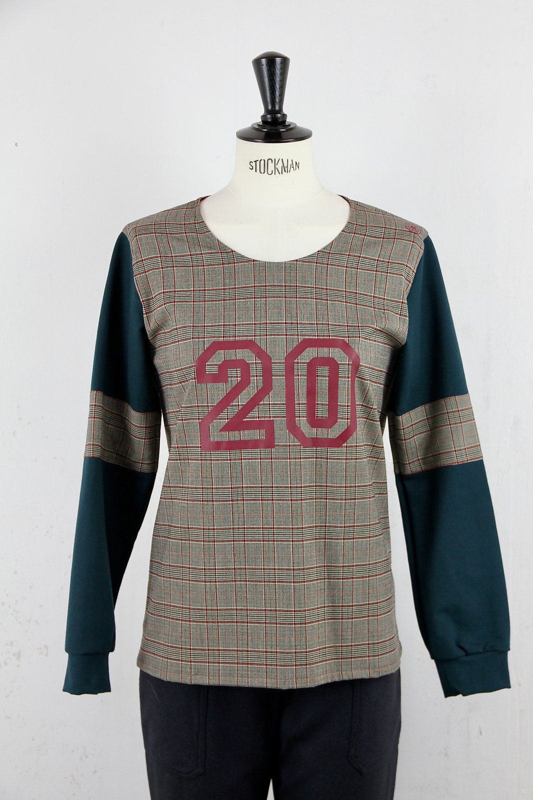 Haut en prince de Galles floqué rouge “20”, boutonné dans le dos manches en molleton vert. Lavage à la main ou délicat Prix 178 €-60%=71€