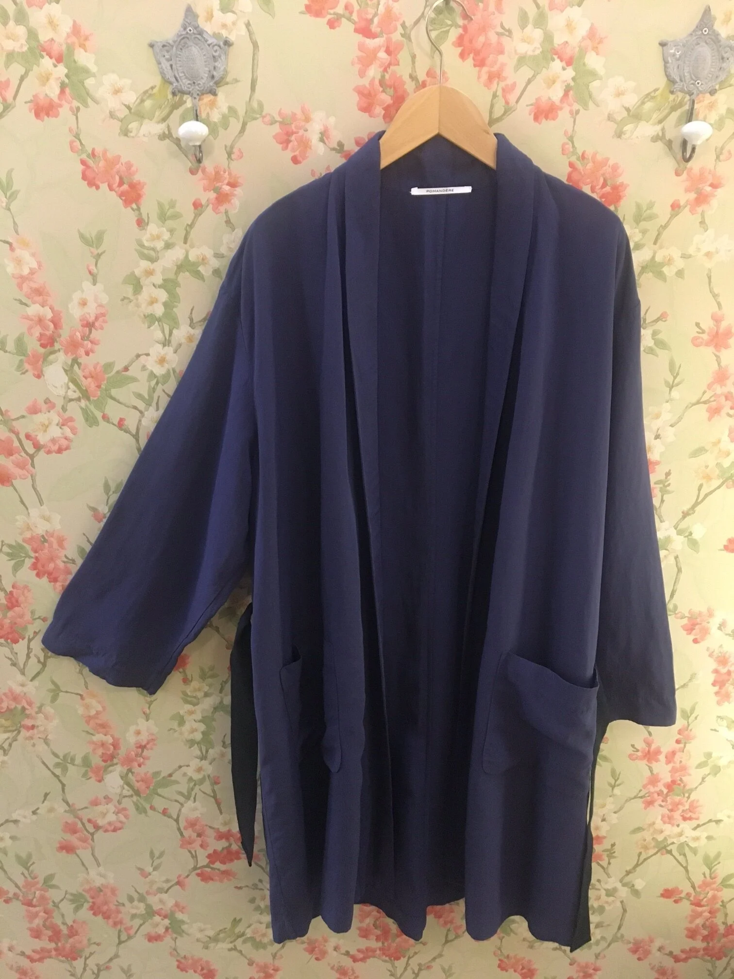 Trench coupe ample bleu marine avec ceinture en coton noir ( peut se porter avec ou sans la ceinture ), manches longues et droites, deux poches plaquées sur le devant, très agréable pour les beaux jours, confortable et élégant sur toutes vos tenues.