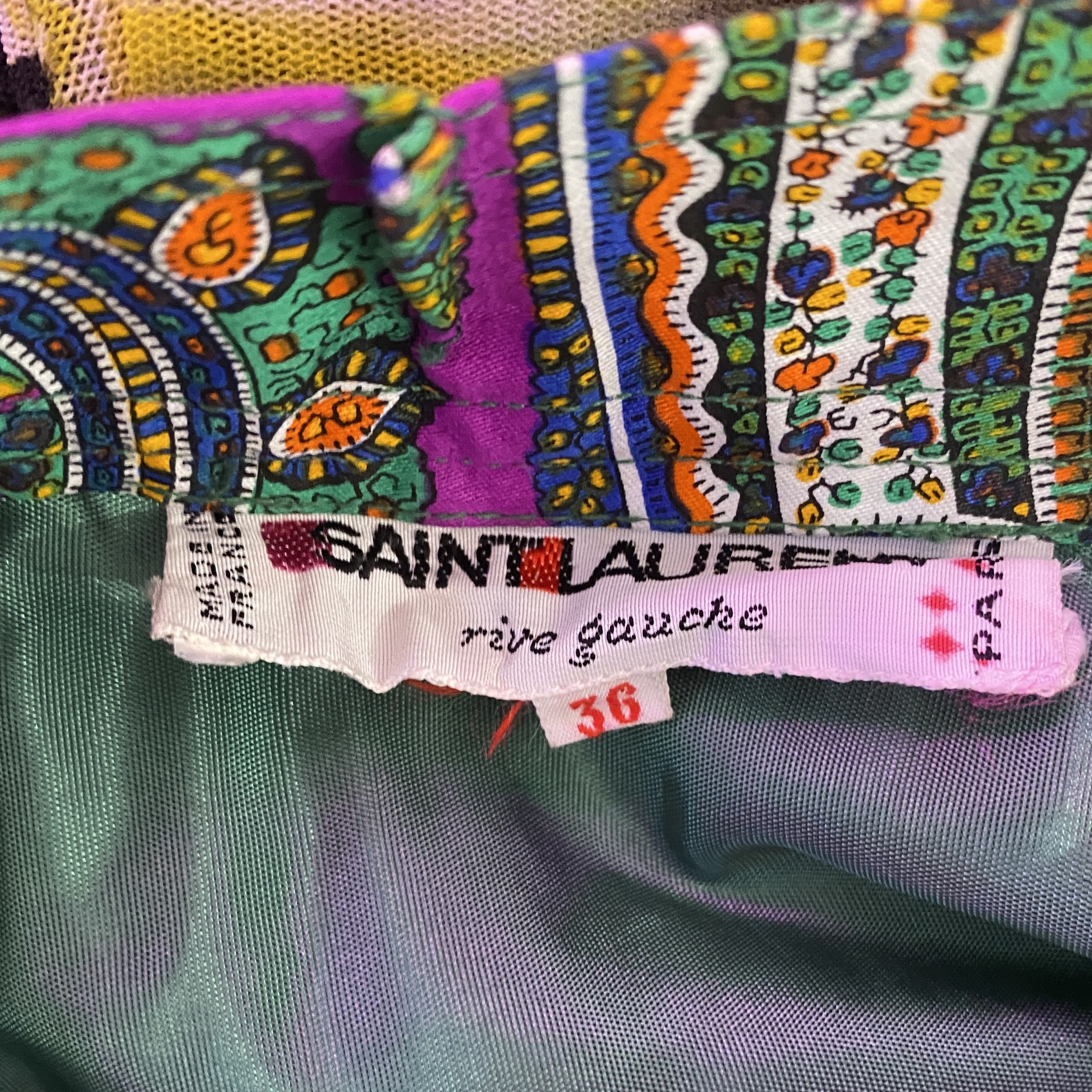 Yves Saint Laurent long colorful, voluminous silk skirt with a green lining inside, cashmere pattern.